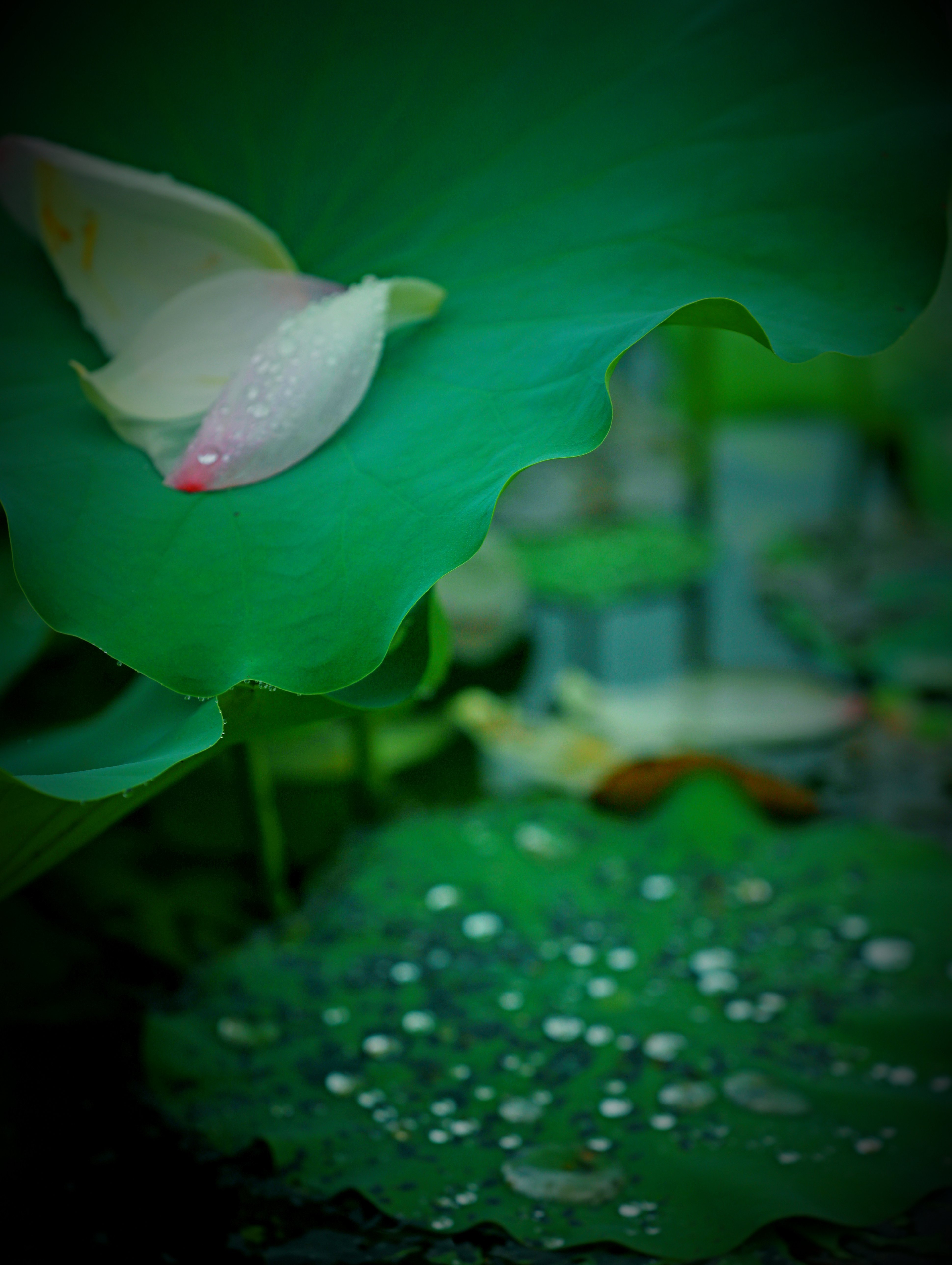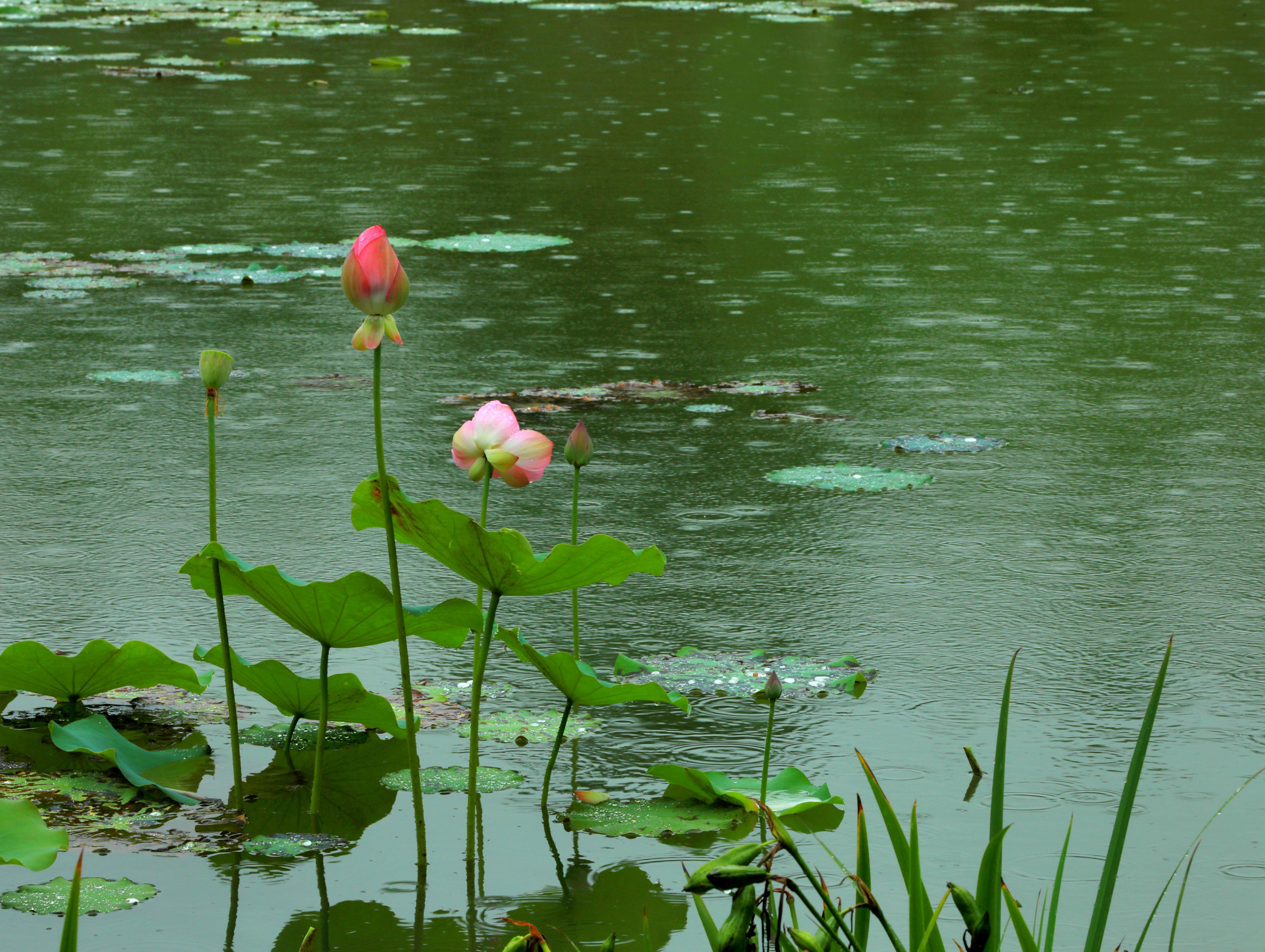 淅淅沥沥的小雨,滋润着这方荷花塘。