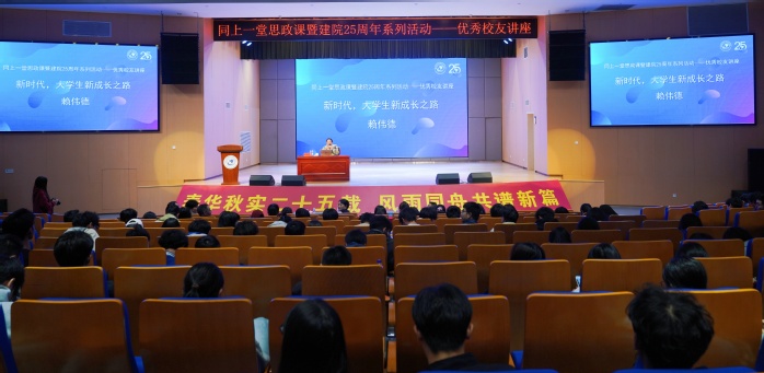 11月8日,“同上一堂思政课”系列讲座《新时代,大学生新成长之路》在图书馆报告厅举行。本次活动特邀杭州电子科技大学优秀校友、原中国电子信息产业联合会副会长、创维集团董事局主席赖伟德担任主讲嘉宾,学院党委书记王艳、院长管力明、特聘教授王泽霞、管理学院执行院长陈月艳及校友代表、400余名师生参与本场讲座。讲座由王艳主持。