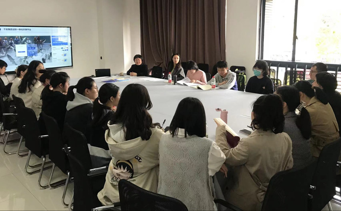 交流会上,首先由姚美琴介绍智能财务方向班的课程设置;接着王泽霞教授介绍千发集团一体化平台的总体架构、流程、展示分析表;最后学生针对学习中遇到的困难与老师们进行交流。