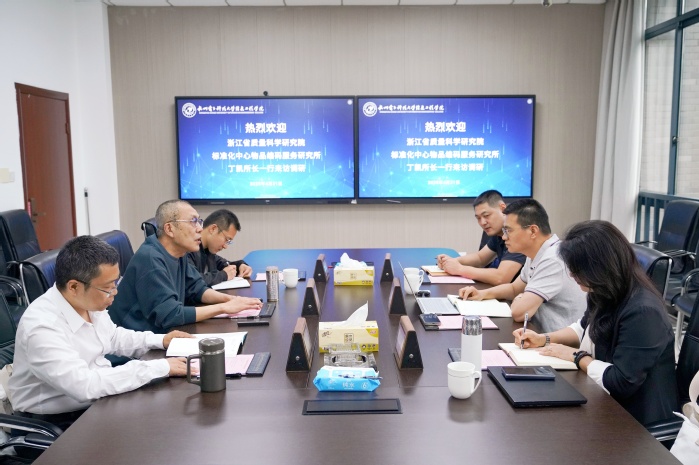 在调研交流会上,信息工程学院院长管力明对浙江省质量科学研究院标准化中心物品编码服务研究所一行的到来表示热烈欢迎,并详细介绍了学校的发展历程、人才培养、优势资源、创新举措与取得的成效。
