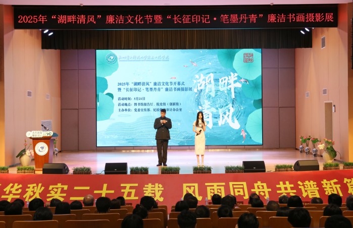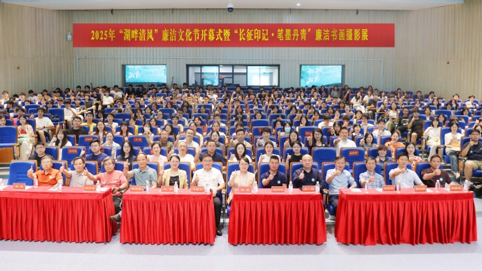 5月21日,我院2025年“湖畔清风”廉洁文化节开幕式暨“长征印记·笔墨丹青”廉洁书画摄影展在图书馆报告厅、院史馆书画区举行。杭州电子科技大学党委副书记钱波,临安区委宣传部部务会议成员、社科联主席沈向荣,临安区纪委常委王新日,浙江省水彩画家协会主席、中国美术学院教授、我院兼职教授周崇涨,杭州市文联原秘书长、杭州市硬笔书法家协会主席、我院兼职教授王晓斌,中国文艺评论家协会理事、杭州市文艺评论家协会副主席、我院兼职教授杨宇全,临安市委宣传部原常务副部长、文联党组书记、文联主席、政协秘书长、临安书画院院长梅鹊,青山湖科投集团党委委员、纪委书记陈向阳,中国书法家协会会员、浙江省硬笔书法家协会名誉主席、杭州市硬笔书法家协会名誉主席、杭州电子科技大学理学院党委书记吴一桥,杭州电子科技大学学工部部长、学生处处长陈巍,杭州电子科技大学校园建设管理处处长蒋叠峰等嘉宾莅临现场。我院党委书记王艳及在家领导,各职能部门、二级学院负责人及师生代表参加了仪式。
