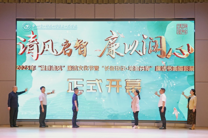 仪式上,沈向荣、王新日、陈向阳、钱波、吴一桥、王艳六位领导嘉宾一同按下启动键,为2025年“湖畔清风”廉洁文化节开幕。