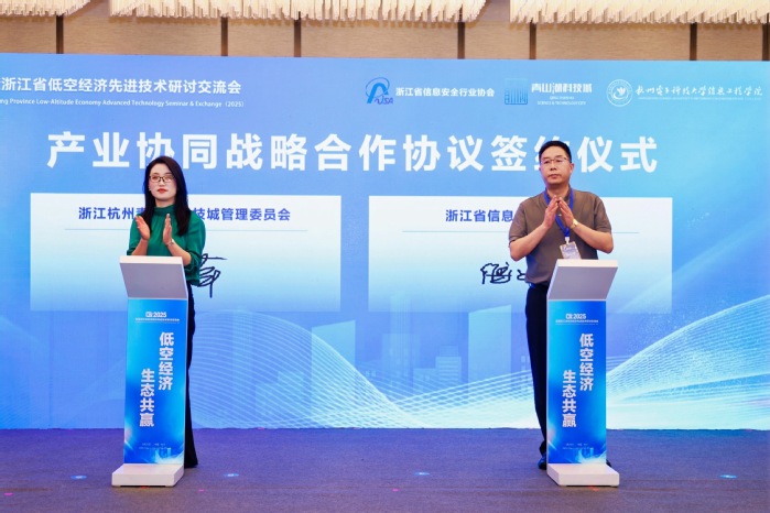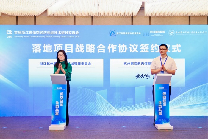 随后进行了“产业协同战略合作协议签约仪式”和“落地项目战略合作协议签约仪式”,共同见证浙江省信息安全行业协会与青山湖科技城管委会、青山湖科技城管委会与杭州聚变航天信息科技有限公司携手,共筑低空经济生态圈。