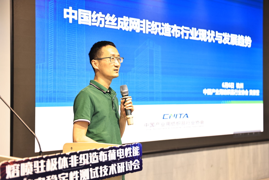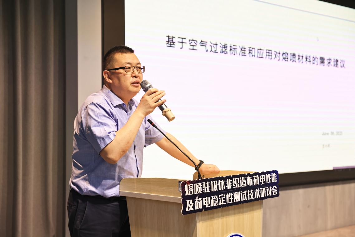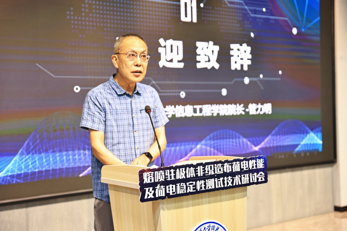 管力明代表学院欢迎与会嘉宾。他指出,熔喷驻极体非织造布是空气净化领域创新材料,荷电特性是产业发展的核心支撑。但当前测试技术滞后、标准体系不完善等制约其发展。此次研讨会将探讨水注极等前沿技术,推进相关行业标准研讨,力求将标准化“标尺”转化为突破瓶颈的“钥匙”,推动行业跨越发展。