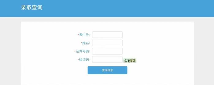 • 进入录取查询页面后,输入考生号、姓名、身份证号和验证码,即可查询。