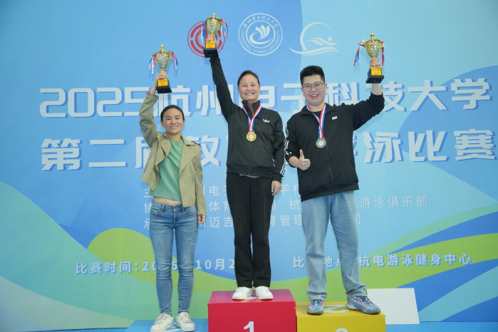 在杭州电子科技大学第二届教职工游泳比赛中,信息工程学院游泳代表队凭借奋勇拼搏的姿态与强劲的团队实力,最终斩获团体亚军,为学院赢得了荣誉,更展现出独特的精神风貌。