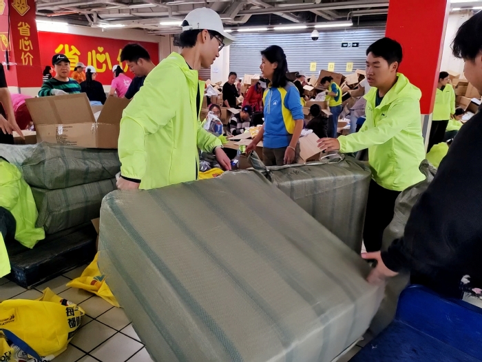 工作站里,志愿者们围坐一起,分工干活,默契自成。有人专注清点,构筑起物资流转的坚实基座;有人负责传递,在流水线间架起高效的桥梁。每一个环节的顺畅,都源于彼此的信任与配合;每一份成果的达成,都是团队力量的最佳印证。在这场体力与耐心的接力中,信工学子用行动诠释了什么是“我们”,什么是最好的团队。