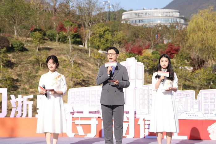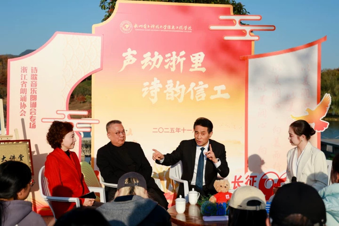 临安区委宣传部部务会议成员、社科联主席沈向荣,临安团区委书记陈丽,科投集团党委委员、纪委书记陈向阳,浙江省朗诵协会会长刘忠虎,执行会长王福生,副会长杨莅,副会长曹勇,副会长兼秘书长诗琨出席本次活动。我院副院长郑皓,副院长卢文军,各二级单位负责人及师生代表参加了本次活动。